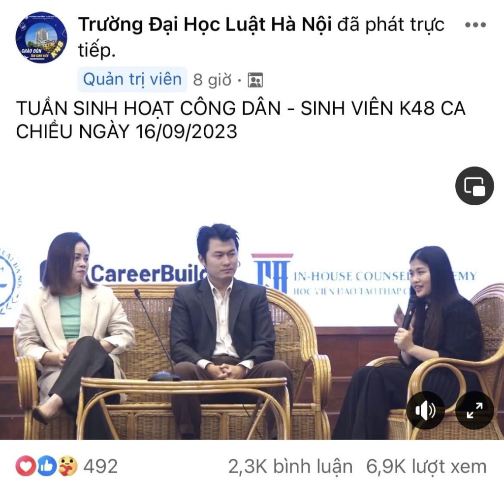 Học viện đào tạo pháp chế ICA hân hạnh tham dự Workshop “FreshMan Starter Pack – Hành trang học tập và phát triển tương lai” do Đại học Luật Hà Nội kết hợp với Career Builder, JobUp tổ chức để chia sẻ những kỹ năng cần thiết trong hành nghề luật với sinh viên năm 1 Đại học Luật Hà Nội thông qua 2 hình thức Online và Offline