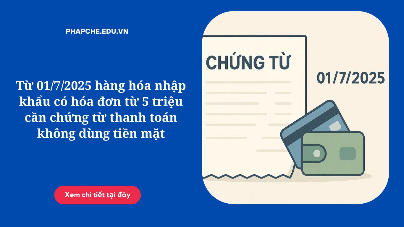 Từ ngày 01/7/2025, đối với hàng hóa nhập khẩu có hóa đơn từ 5 triệu đồng trở lên (gồm cả thuế GTGT), doanh nghiệp bắt buộc phải có chứng từ thanh toán không dùng tiền mặt hợp lệ để đảm bảo quyền khấu trừ thuế và chi phí được trừ. Việc không tuân thủ có thể dẫn đến việc bị loại chi phí và không được hoàn thuế.